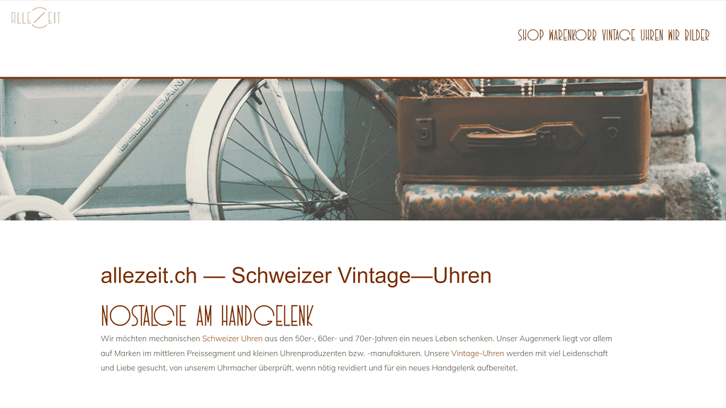 So sind wir in Kontakt gekommen und ich habe meine erste Website (siehe Bild unten) für einen “Kunden” machen können. Allezeit.ch.