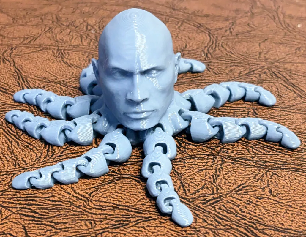 Eines der ersten Modelle, welches ich mit meinem frisch erworbenen 3D Drucker gedruckt habe, war der sogenannte Rocktopus. Eigentlich ein Oktopus mit dem Kopf von Dwayne The Rock Johnson. Damit habe ich einen Arbeitskollegen von mir überrascht.