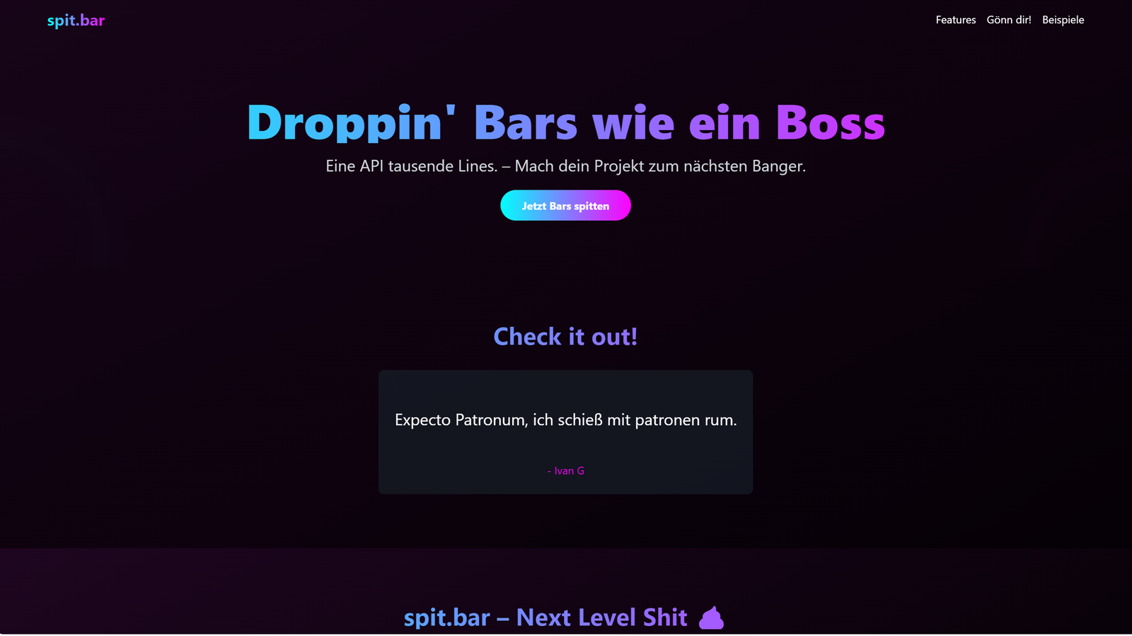 Eine simple Line, Assi, aber trotzdem noch so, dass sie dir ein Lachen auf die Lippen zaubert. Genau das wollte ich mit spit.bar erreichen.